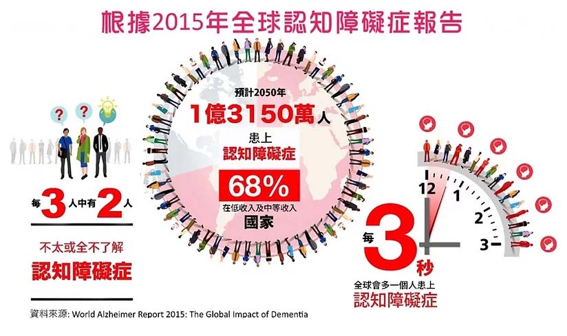 根據香港中文大學2006年的研究,本港70歲或以上長者中,約有9.3%患有認知障礙症,又稱失智症。令人關注的是,最新的2017年精神健康檢討報告顯示,香港已有接近10萬名失智症患者,接近長者人口的十分之一。這種由於大腦神經細胞退化而導致功能減退的疾病,嚴重影響患者的記憶力、理解能力、語言能力、學習能力、計算能力和判斷力。部分人更會出現情緒、行為及感覺方面的明顯變化。及早了解這種疾病的特徵與症狀,對於及時識別身邊長者的需求至關重要。