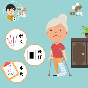黃先生在浴室滑倒,之後行動變得非常不便,但因為獨居,兒子工作又忙,又沒有朋友可經常幫忙扶持去看跌打,好在兒子幫忙預約了中醫針灸及按摩上門治療,加上中藥調理身體,黃先生很快康復啦。