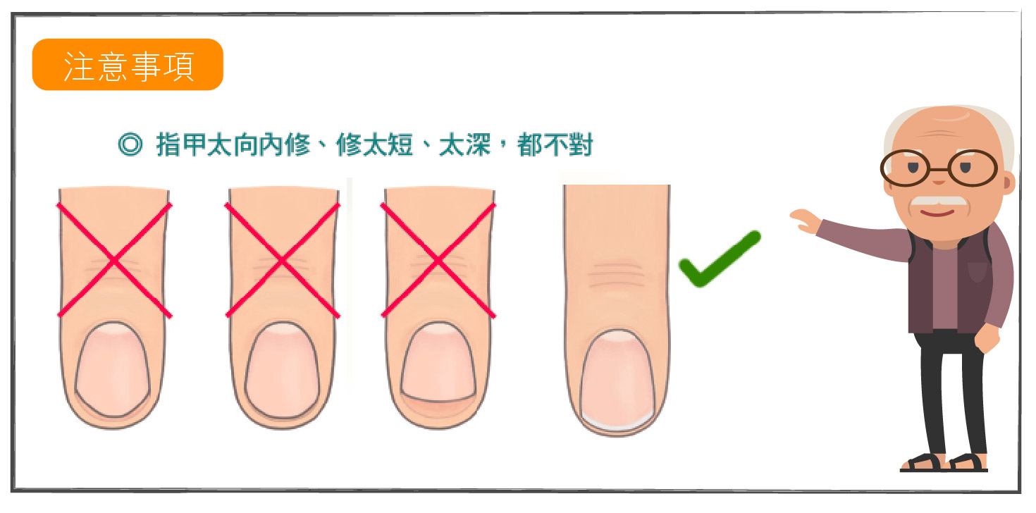 - 如指甲周圍出現紅腫等異常情況,應立即停止修剪並告知醫生;