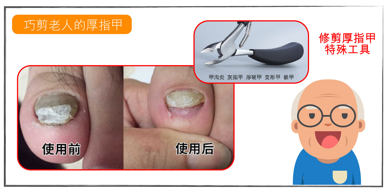 隨著年齡的增長,長者的關節活動能力和手指靈活性逐漸降低,導致他們無法精確地使用指甲鉗修剪指甲,而指甲太厚或太薄、長不出來、長得太裡面等問題都會引起不適甚至影響健康。