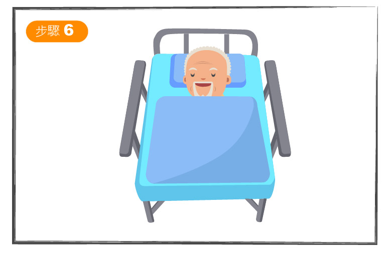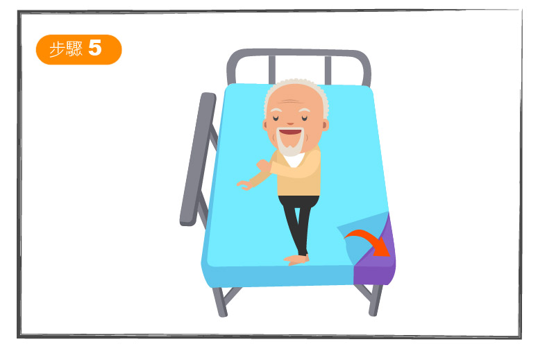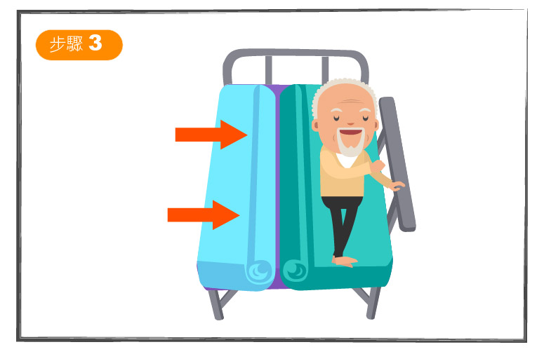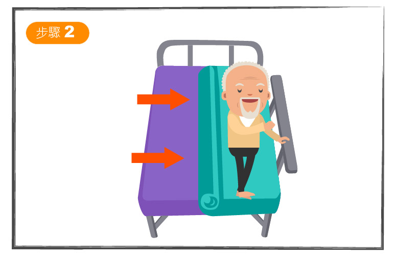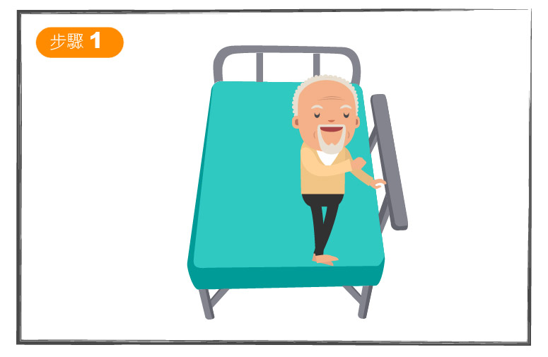 如使用醫療床,先將其中一邊床欄拉起;如使用普通床架則需要多一位照顧者在旁協助,避免病人跌落床下。
