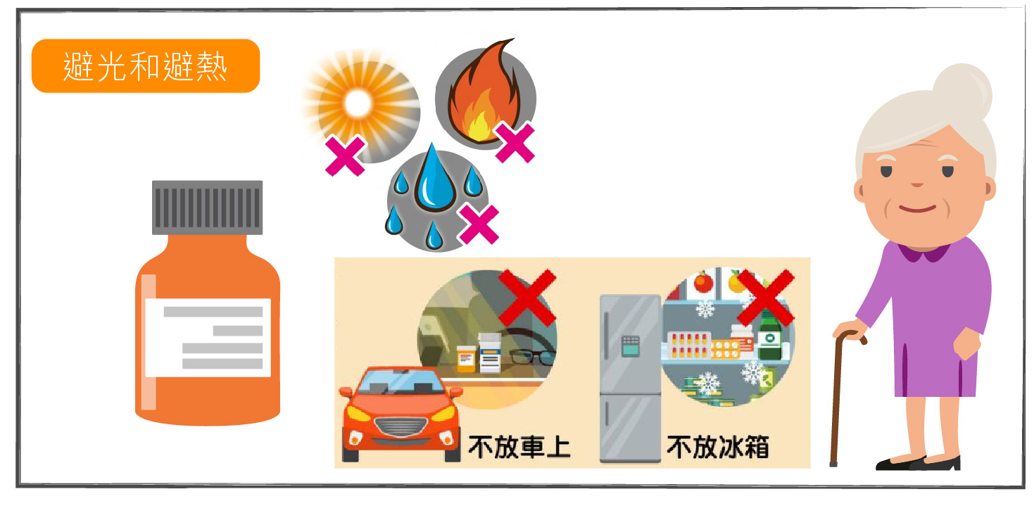 醫療院所給予藥物,大多都已拆封再分裝因此藥品可能因受潮而變質,如果藥物數量較多,最好放在密封罐內保存,此外,光線中的紫外線,照射到藥品後,也會讓藥品變質,所以也應注意避光和避熱。 絕大部射藥品置放在室內陰涼乾燥處即可,除非有特別註明必須冷藏的藥品,才需放在雪櫃冷藏室。