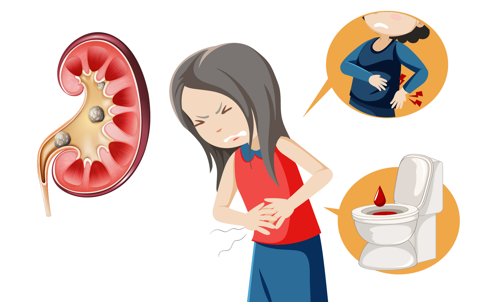 - 持續性的腰側或腹側疼痛。