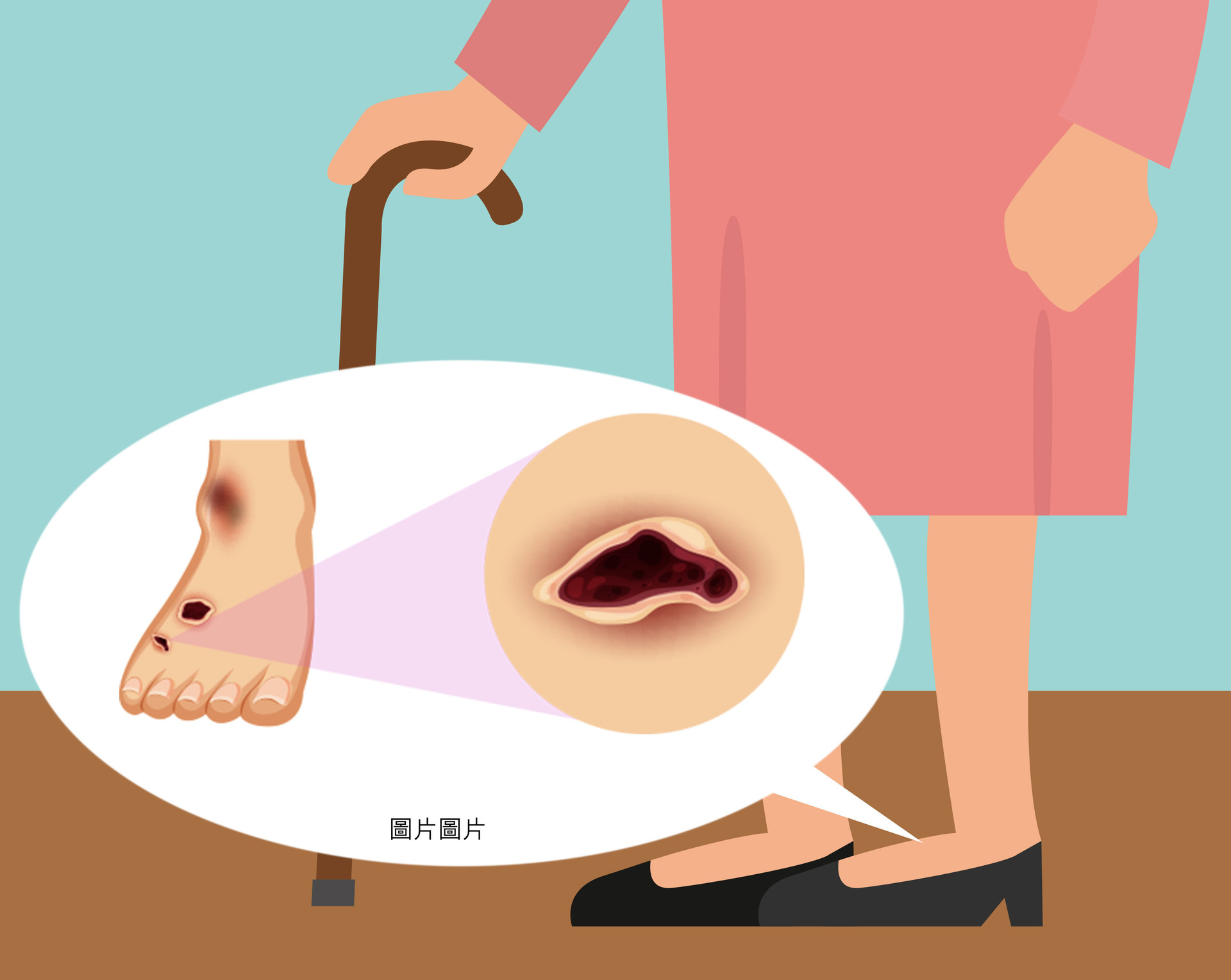 如果你發現腳部冰冷、手腳指出現麻痹或針刺感覺、有傷口但不覺痛、腿部色澤變異、足部變形、下肢肌肉疼痛,或走路容易累等情況,都必需提高警覺,因為這些都是糖尿病足症狀!