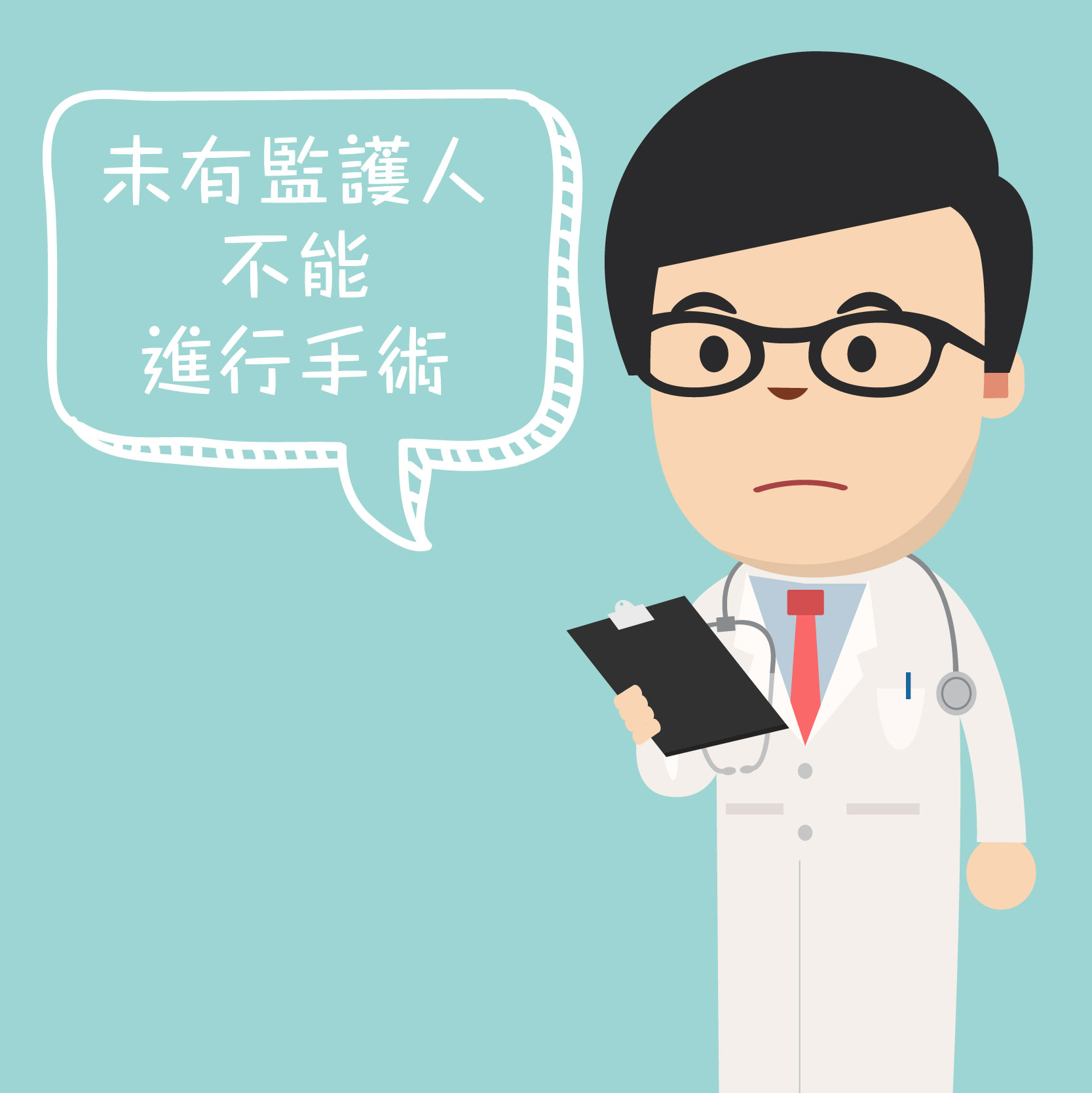 醫生拒絕在未有監護人被委出前為當事人同意接受治療前進行非緊急的治療。