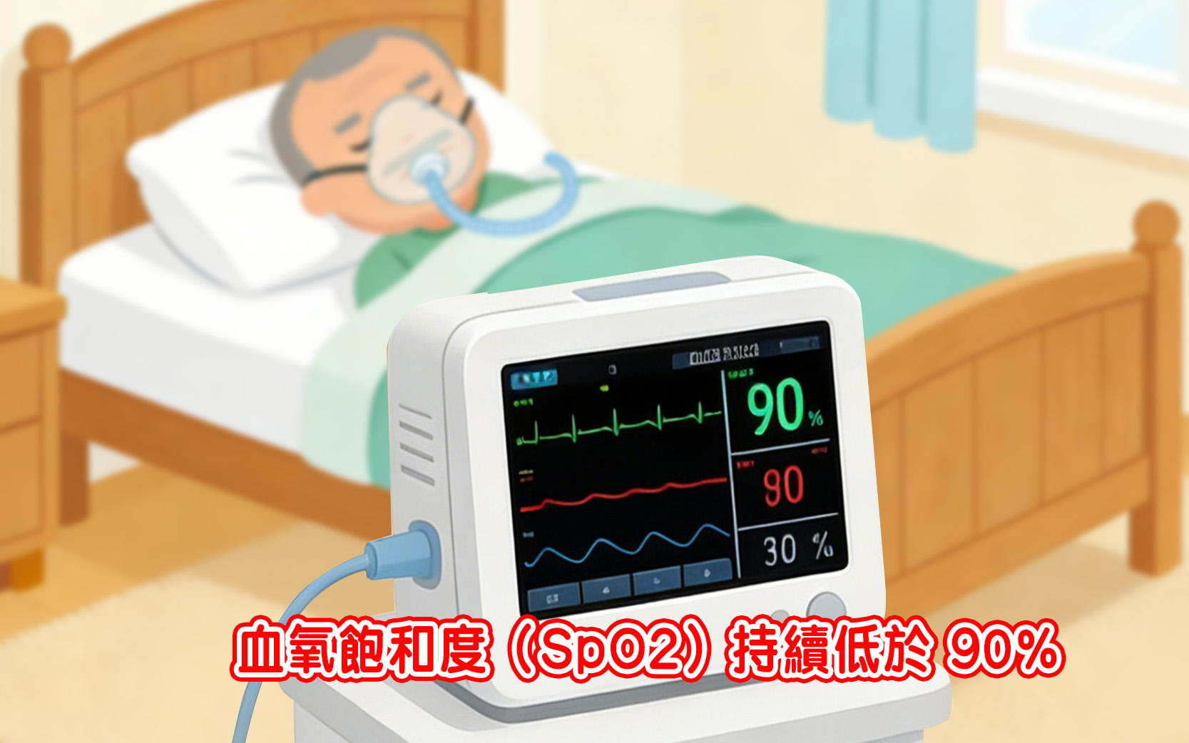 血氧飽和度是衡量血液中氧氣含量的指標。根據世界衛生組織(WHO)的氧氣治療指引,當數值低於 90% 時,身體組織可能無法獲得足夠氧氣。這會導致心跳加速、頭暈或神智不清。
